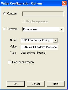With script methods I know, that the SQL can be parametrized, but How can I use a parameter with the help of the built in keyword solution of the DbTable output check?